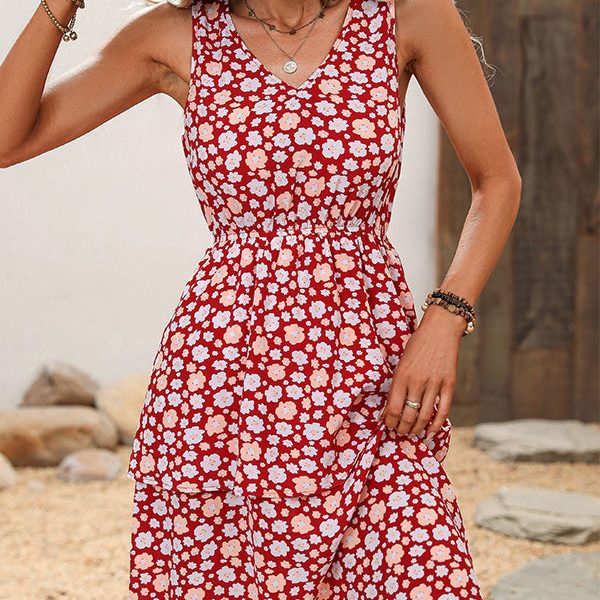 Floral Print Sleeveless Ruffled Dress