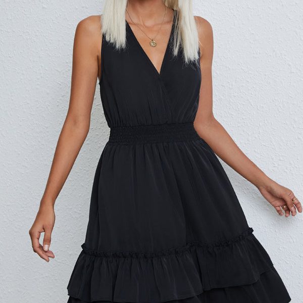Bodycon Puff Sleeve Cascade Dress, Elegant V Neck Slim Dress, Women's Clothing