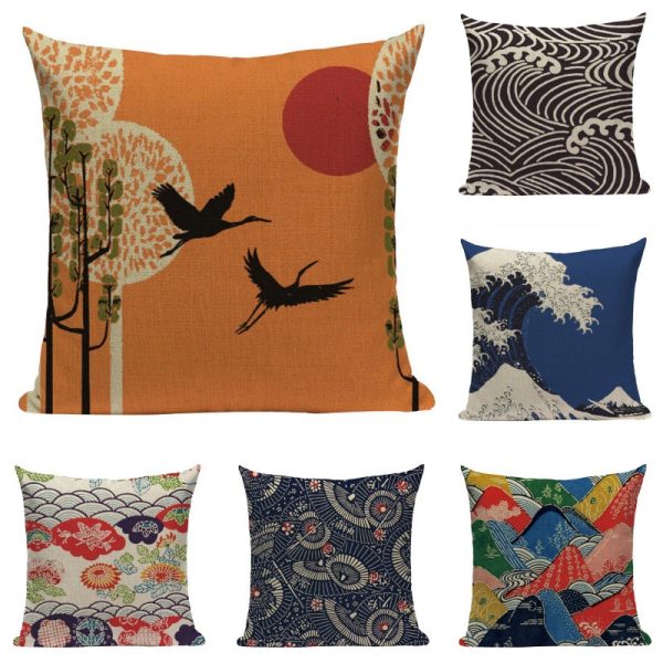 18" Vintage Japanese Ukiyo Style Throw Pillow Cover