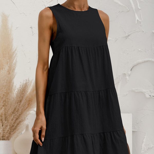 Round Neck Solid Ruched Sleeveless Mini Dress