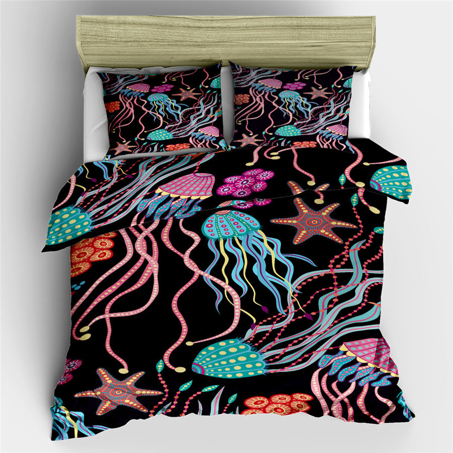 2. The color of this Multi-Color Jellyfish Bedding Set may vary slightly from the product pictures due to computer monitor settings, lighting and background.