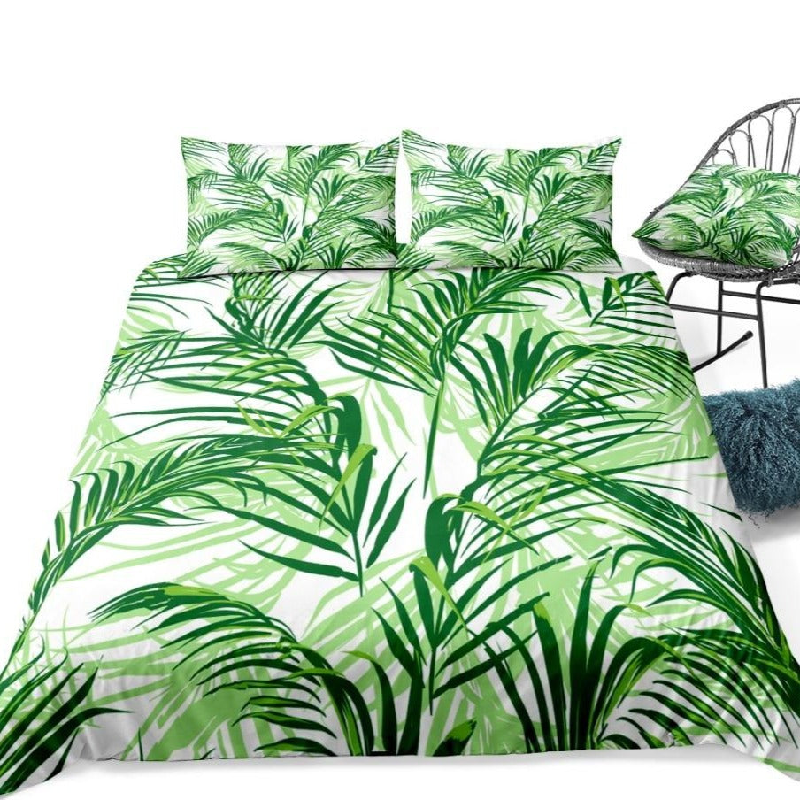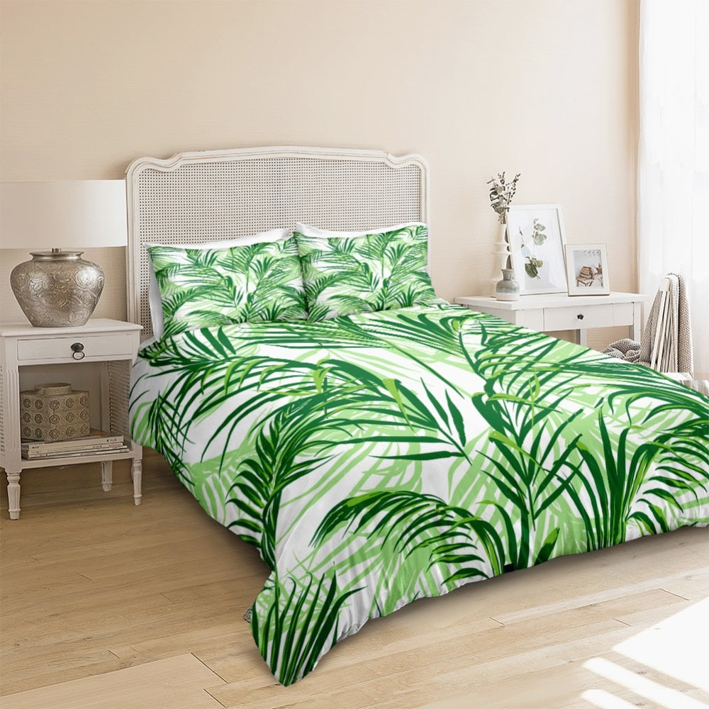 Covered in a beautiful, tropical-inspired print featuring green palm fronds, this Tropical Palm Duvet Cover Set is meticulously crafted from soft polyester microfiber and includes a lightweight zipper duvet cover with matching pillow case(s).