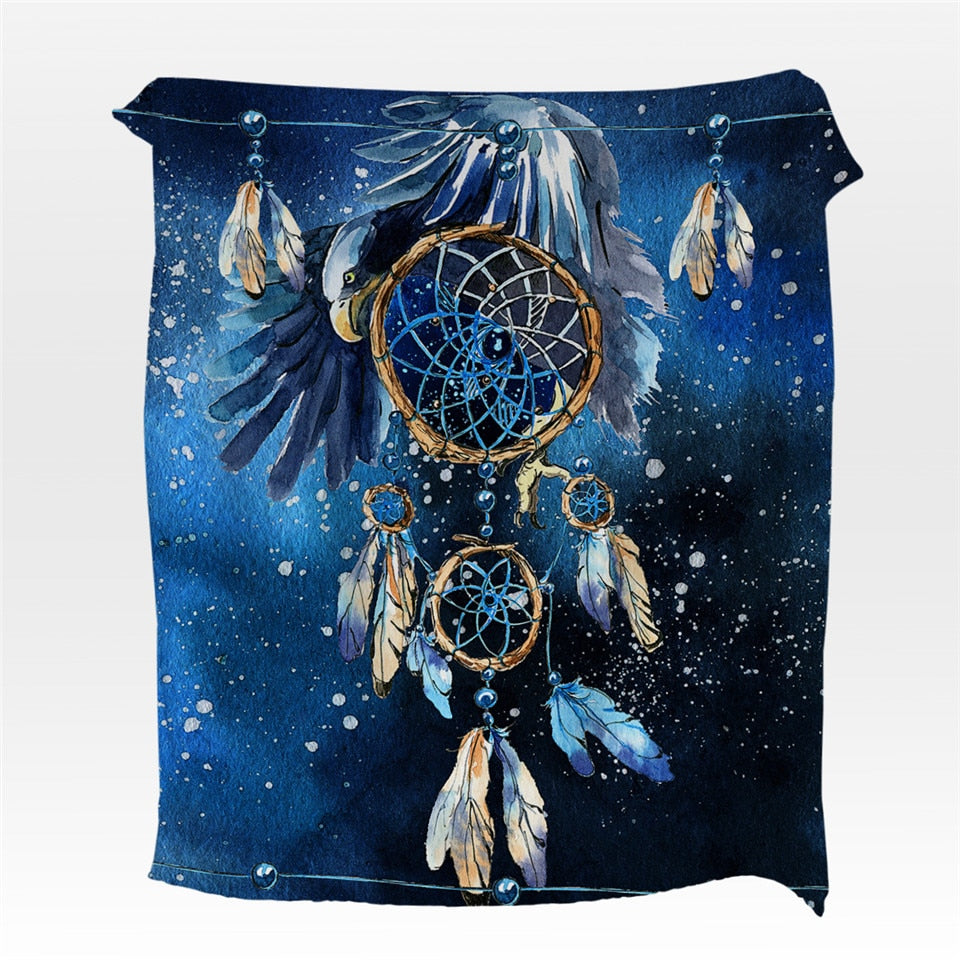 Made from soft coral fleece with an awesome space backdrop, this Blue Galaxy Dreamcatcher Throw Blanket is soft and warm with a mystical touch.