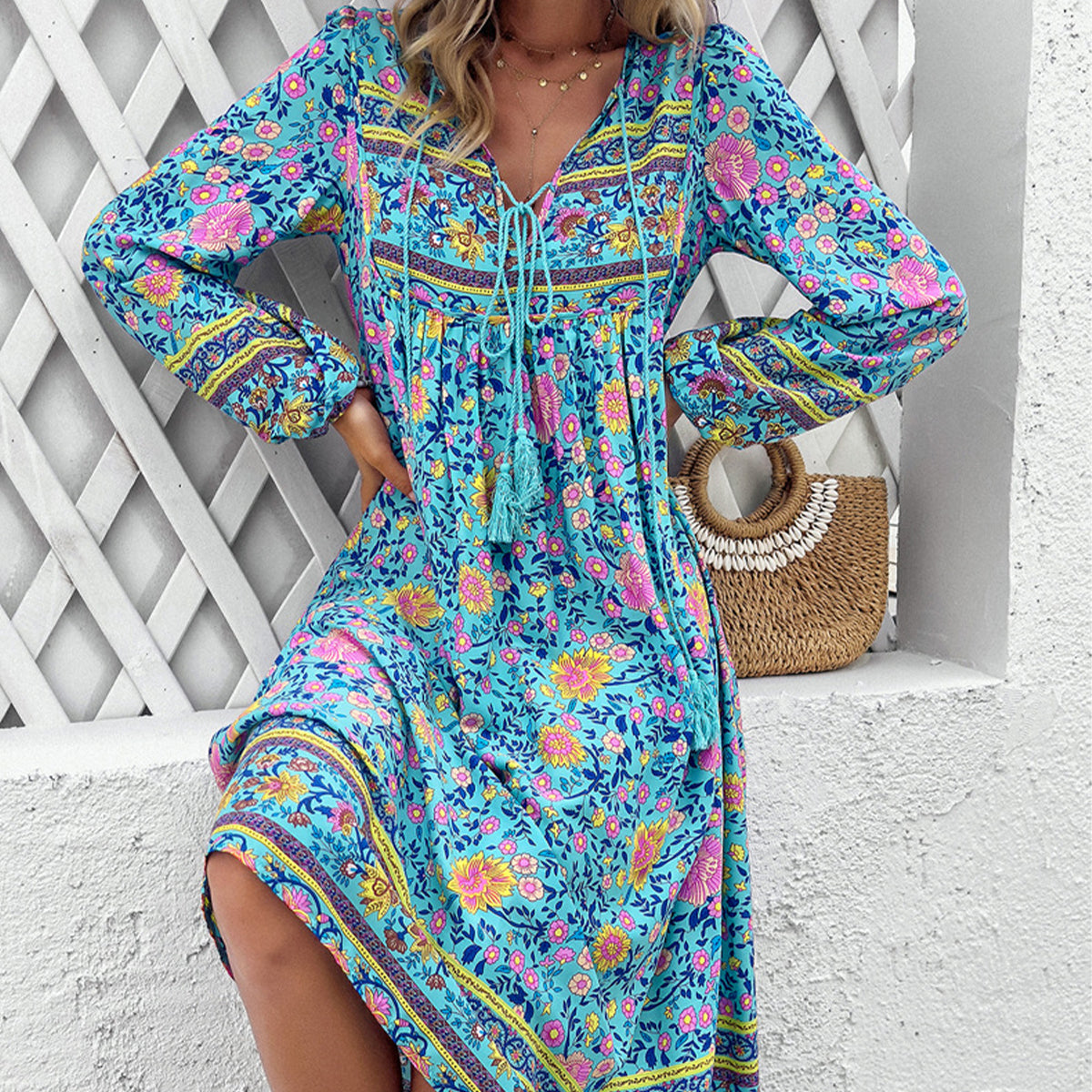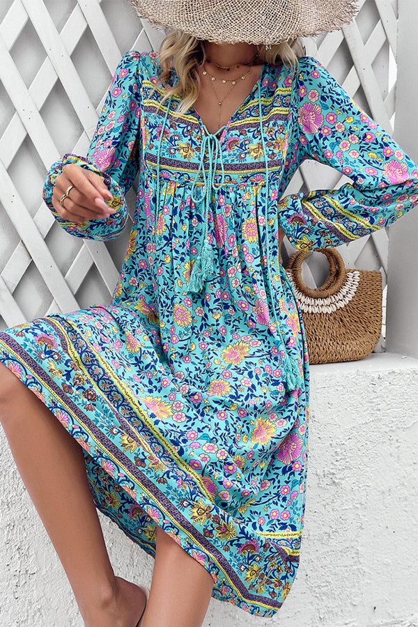 • Bohemia Print Holiday Style Midi Dress