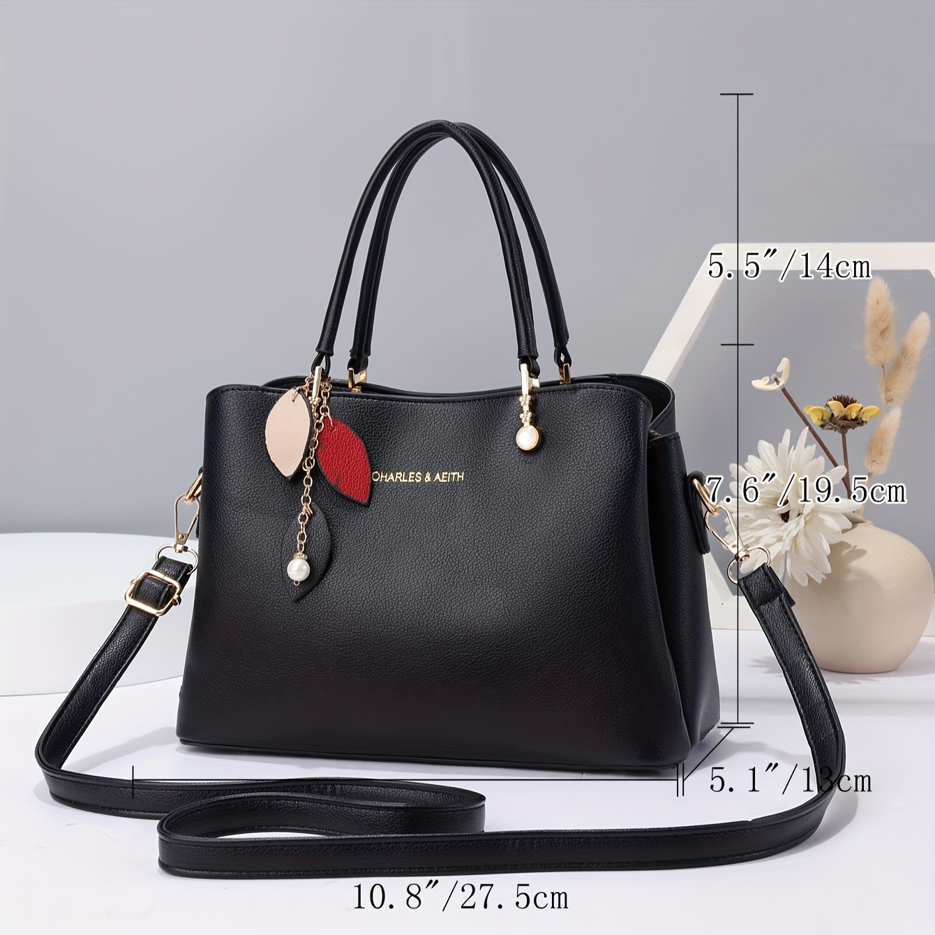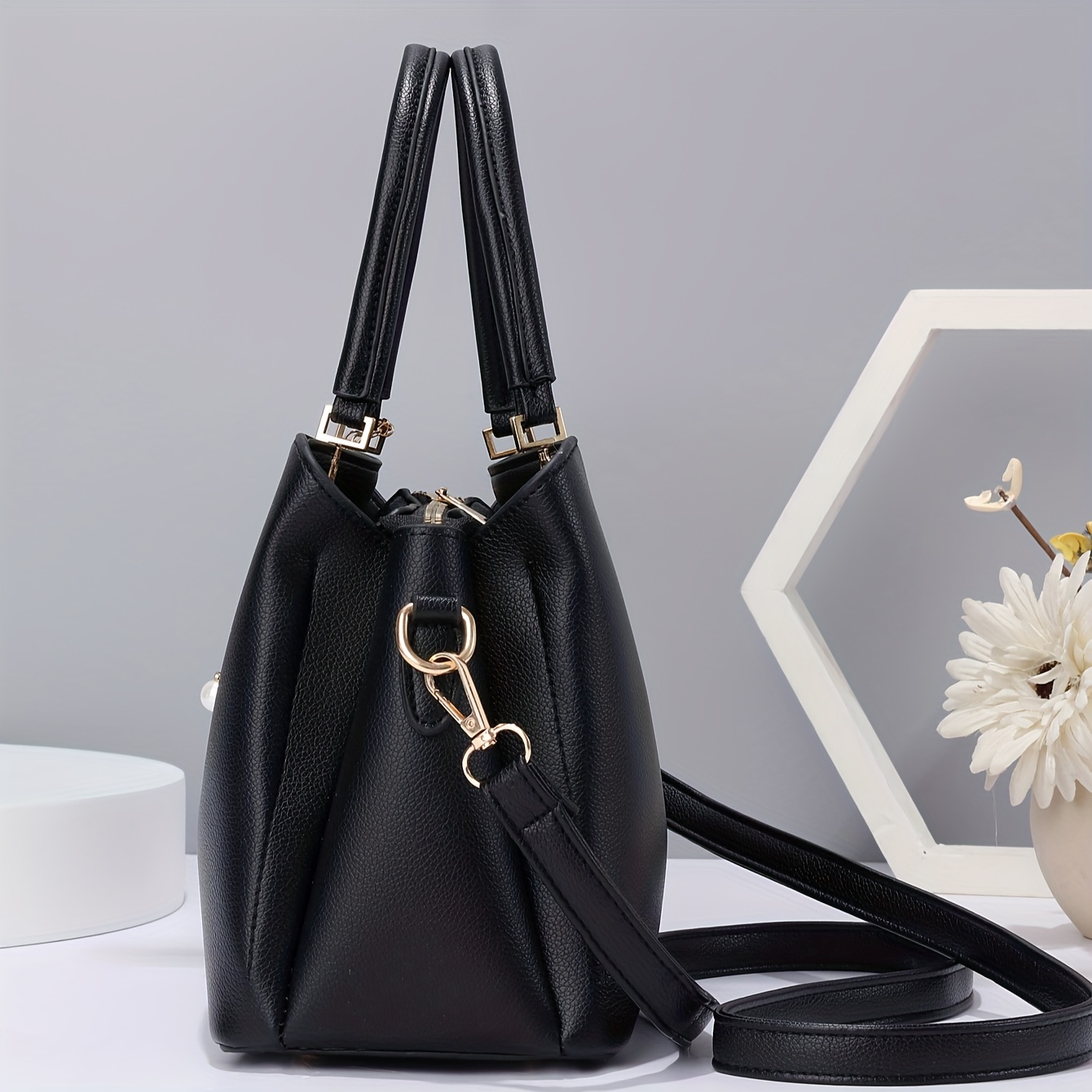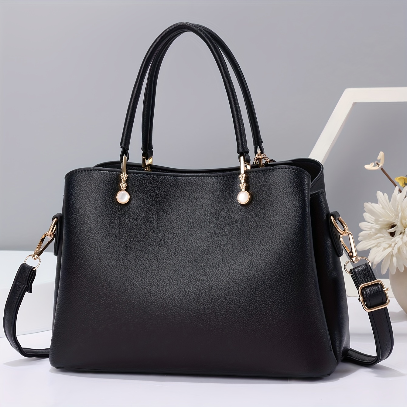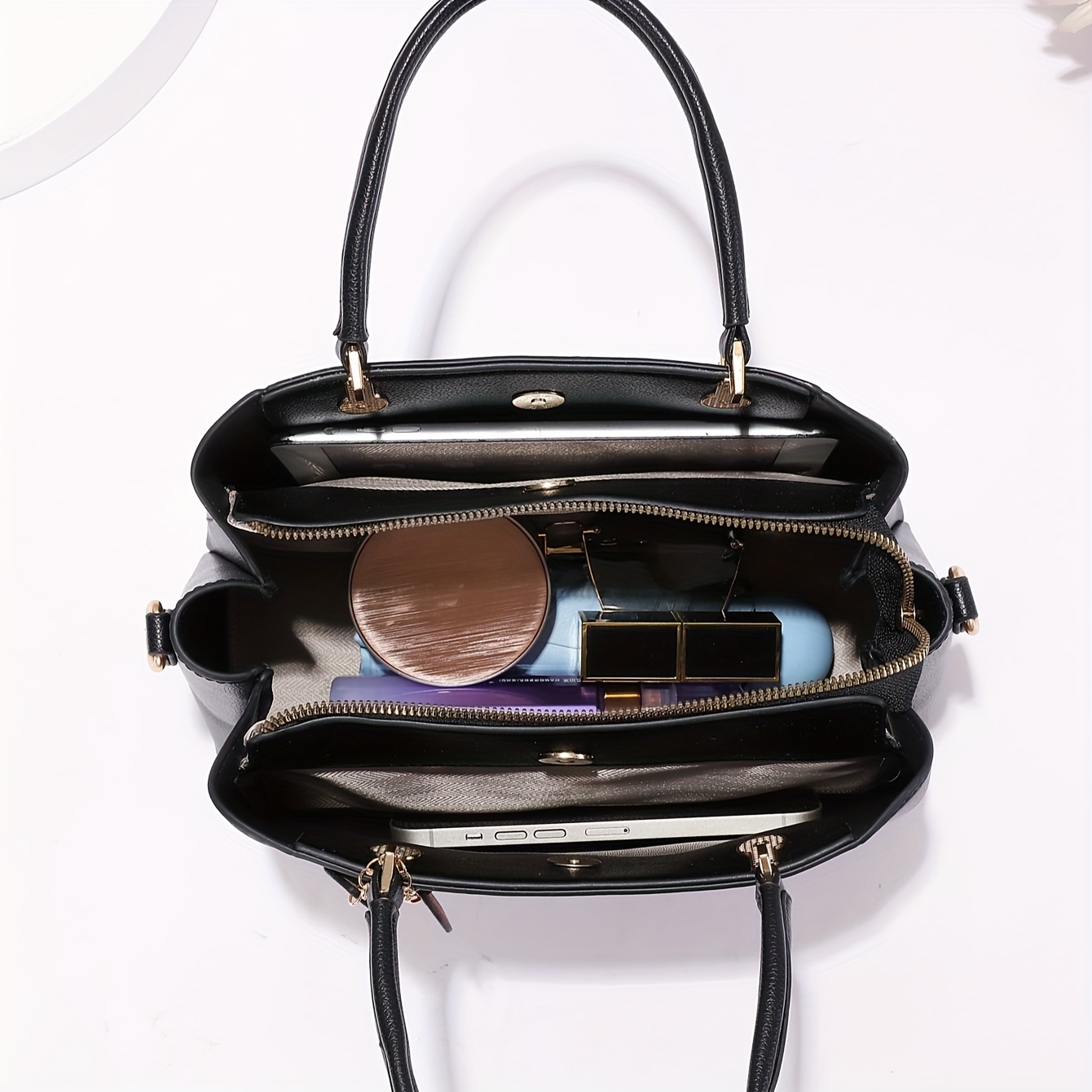 Classic Elegant Top Handle Handbag, All-Match Textured Shoulder Commuter Bag, Women’s PU Leather Bag