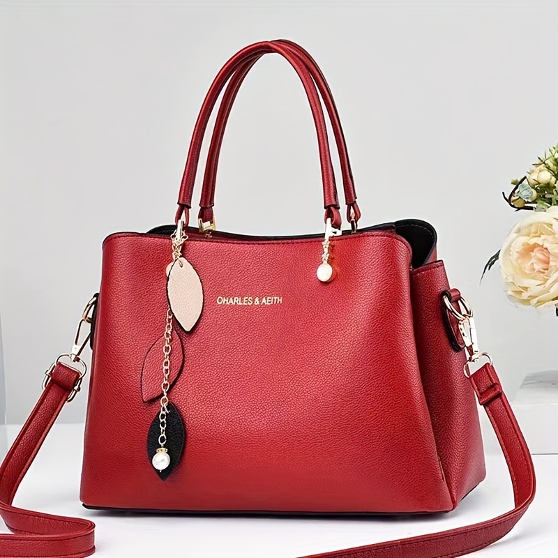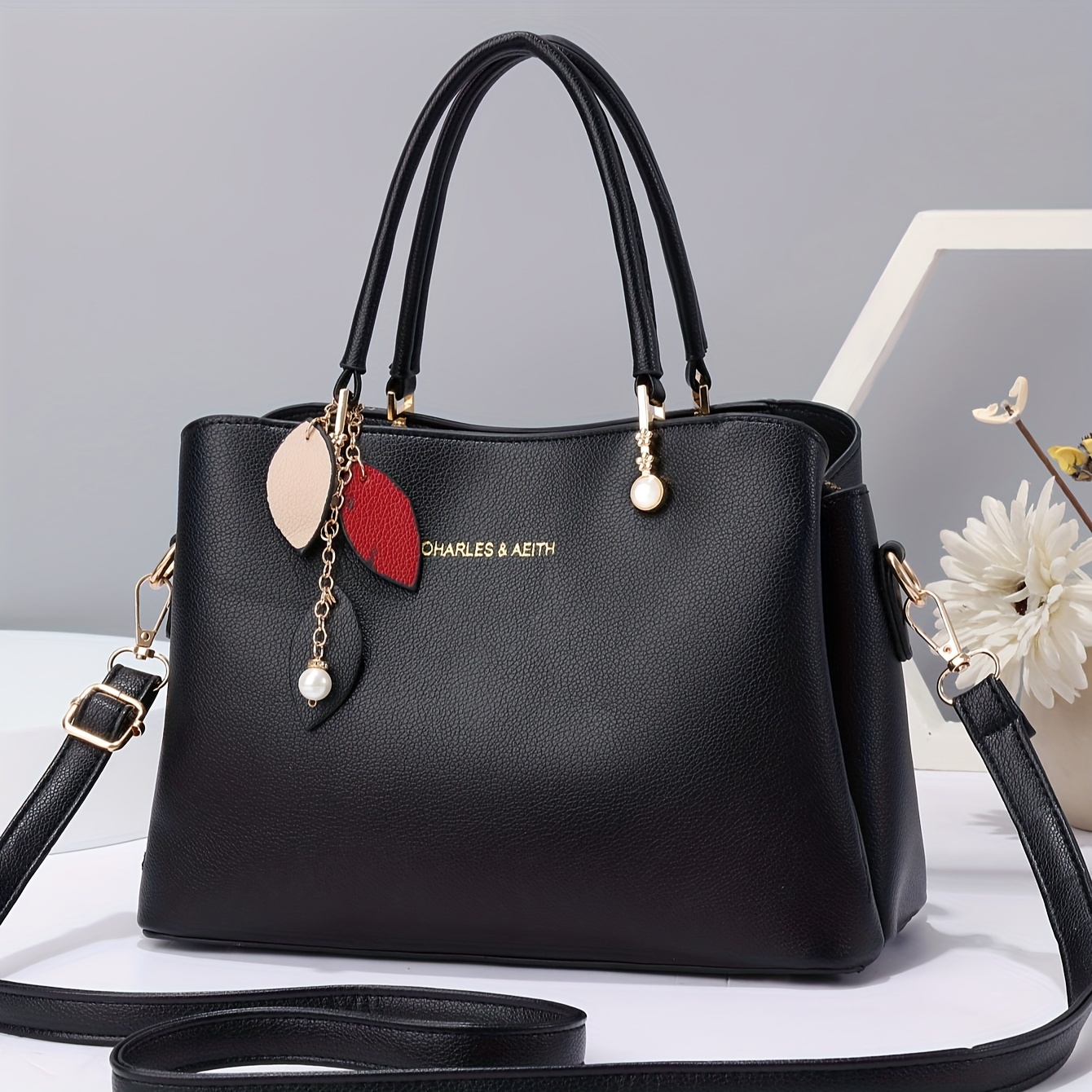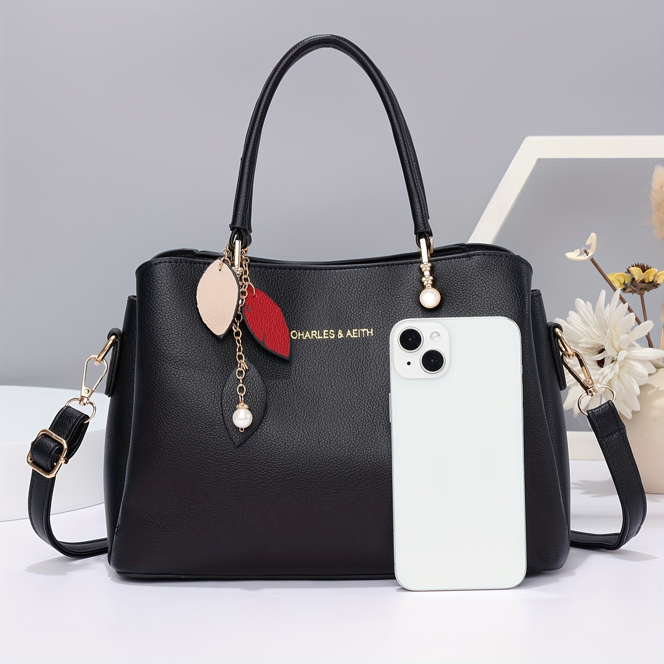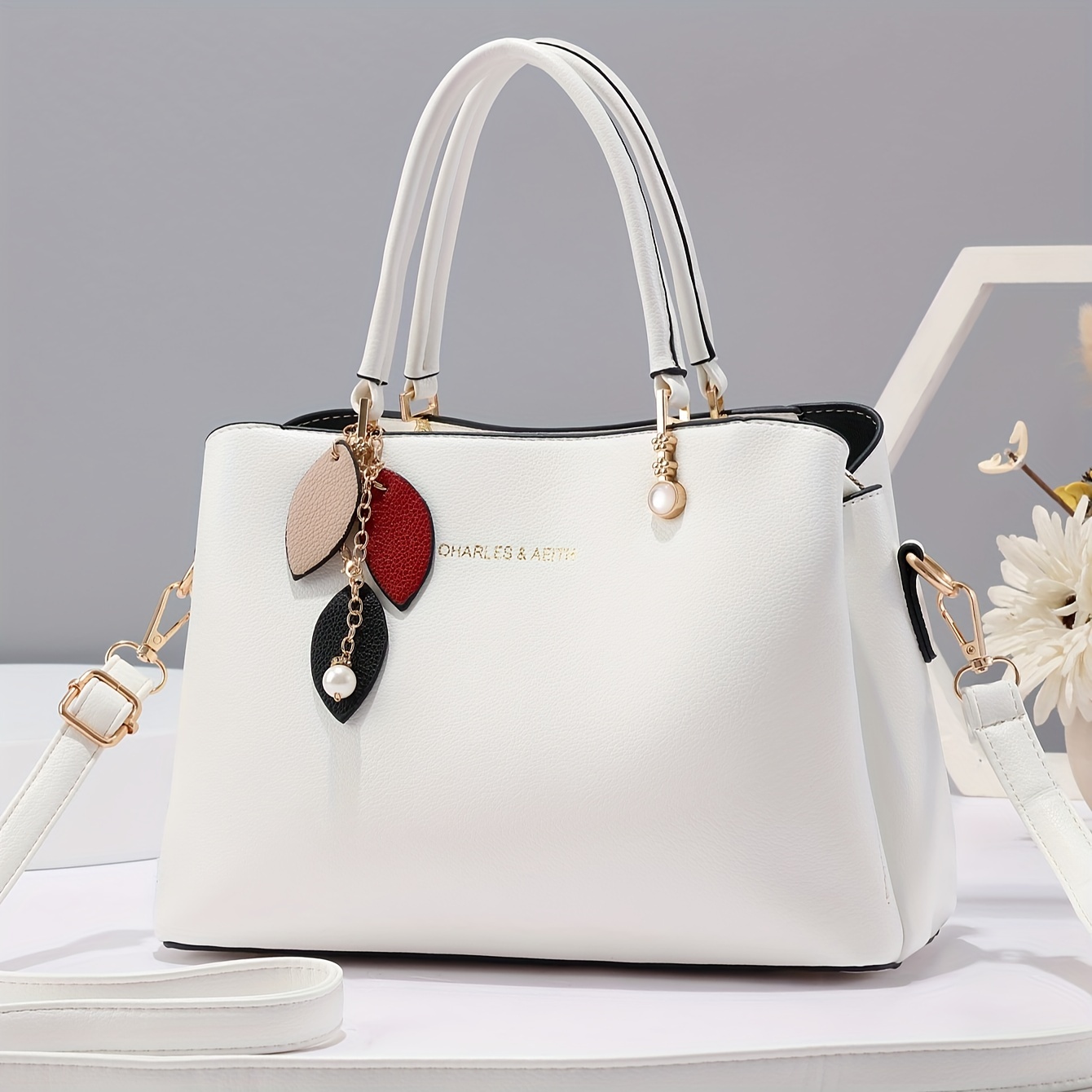 Classic Elegant Top Handle Handbag, All-Match Textured Shoulder Commuter Bag, Women’s PU Leather Bag