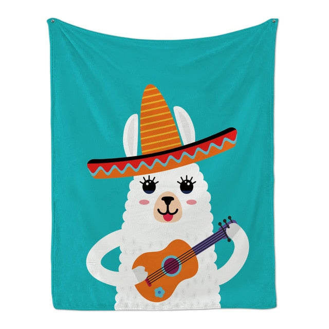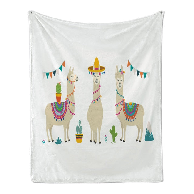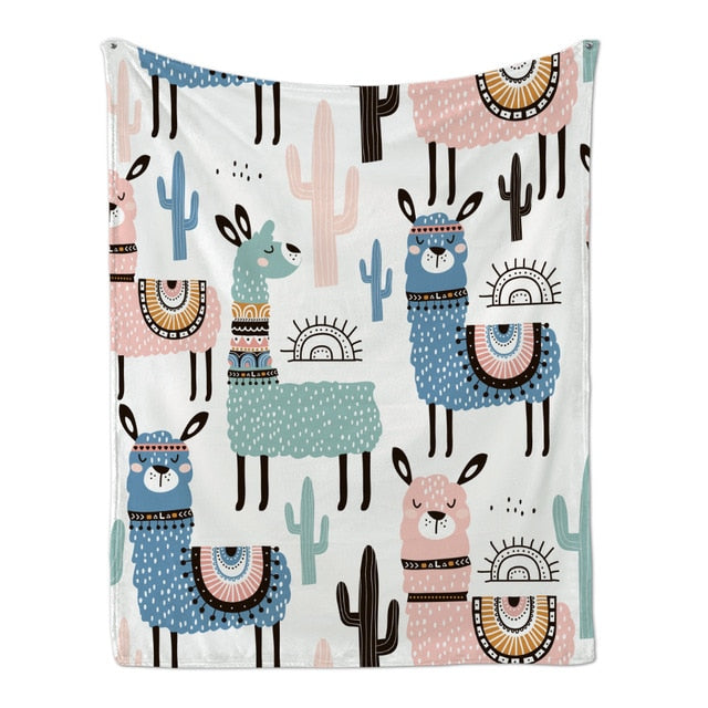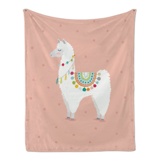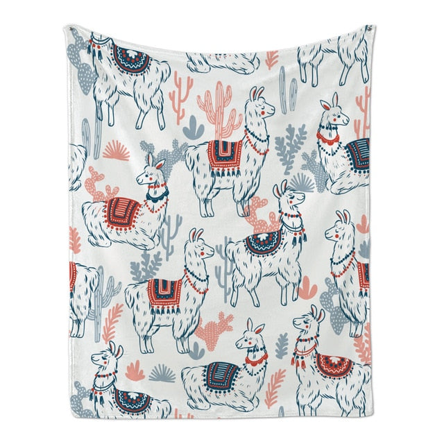 Cute Cartoon Alpaca / Llama Print Fleece Throw Blanket