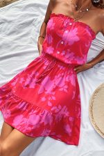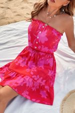 - Fashion Floral Print Strapless Tie Waist Casual Dress