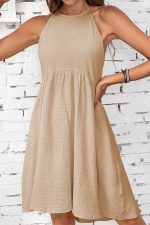 - Fashion Halter Neck Solid Color Dress