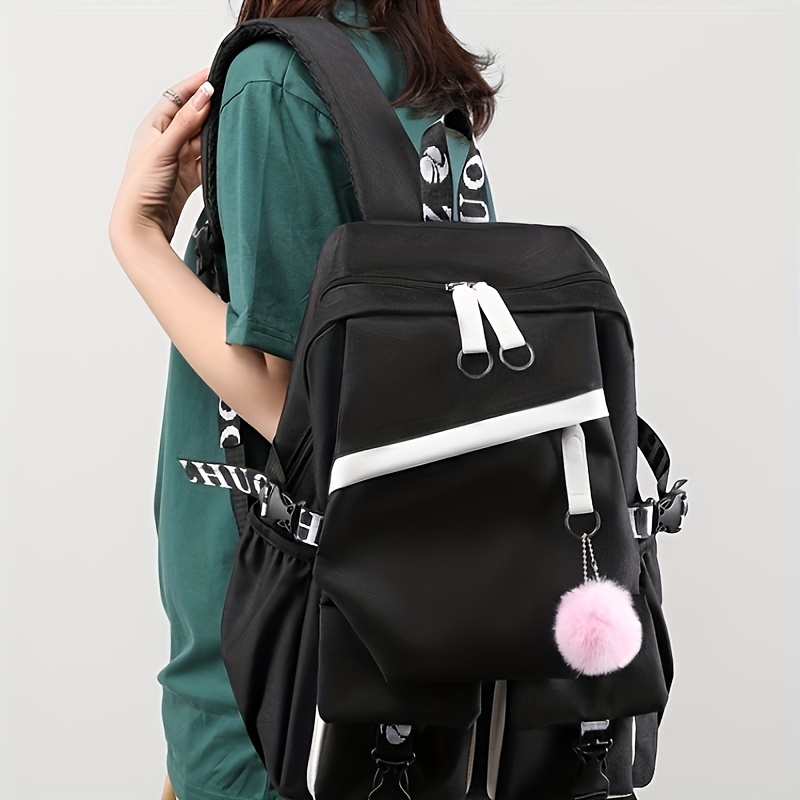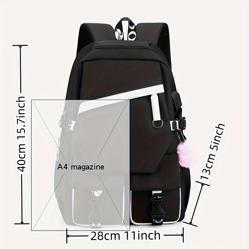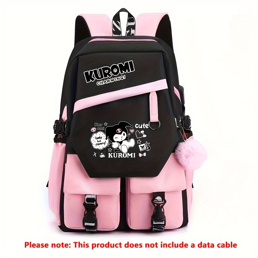 Kuromi Pattern Backpack, Kawaii Stylish School Bag, Women’s Colorblock Rucksack, Large Capacity Foldable Outdoors Daypack