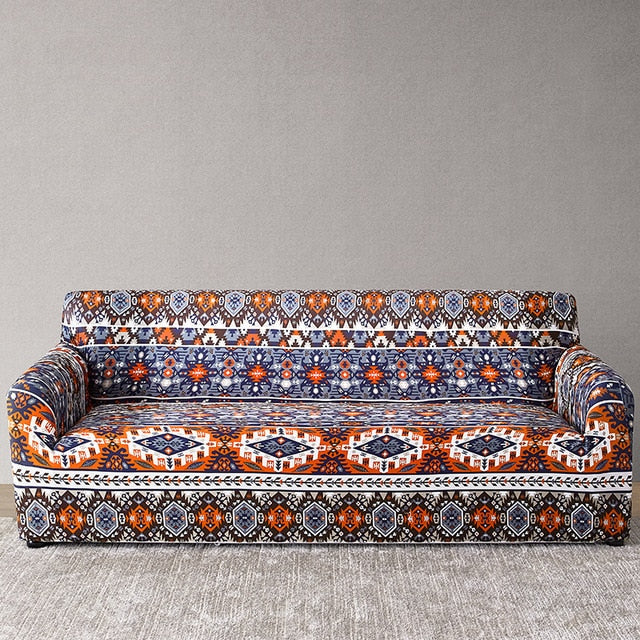 Compatible with most standard love seats and sofas, this Multi-Color Boho Native Sofa Cover is stylish, easy-to-install and will provide a beautiful new look to your old, outdated couch. Ideal for renewing old furniture – or protecting new.