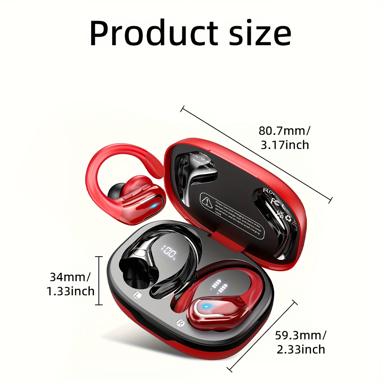 New Wireless Earbuds For Running Sports, Wireless Earphones With Earhooks Pure Bass Sound, Over Ear Headphones With Dual-LED Display, Earphones Built-in Microphone, Noise Cancelling Headset (Red)