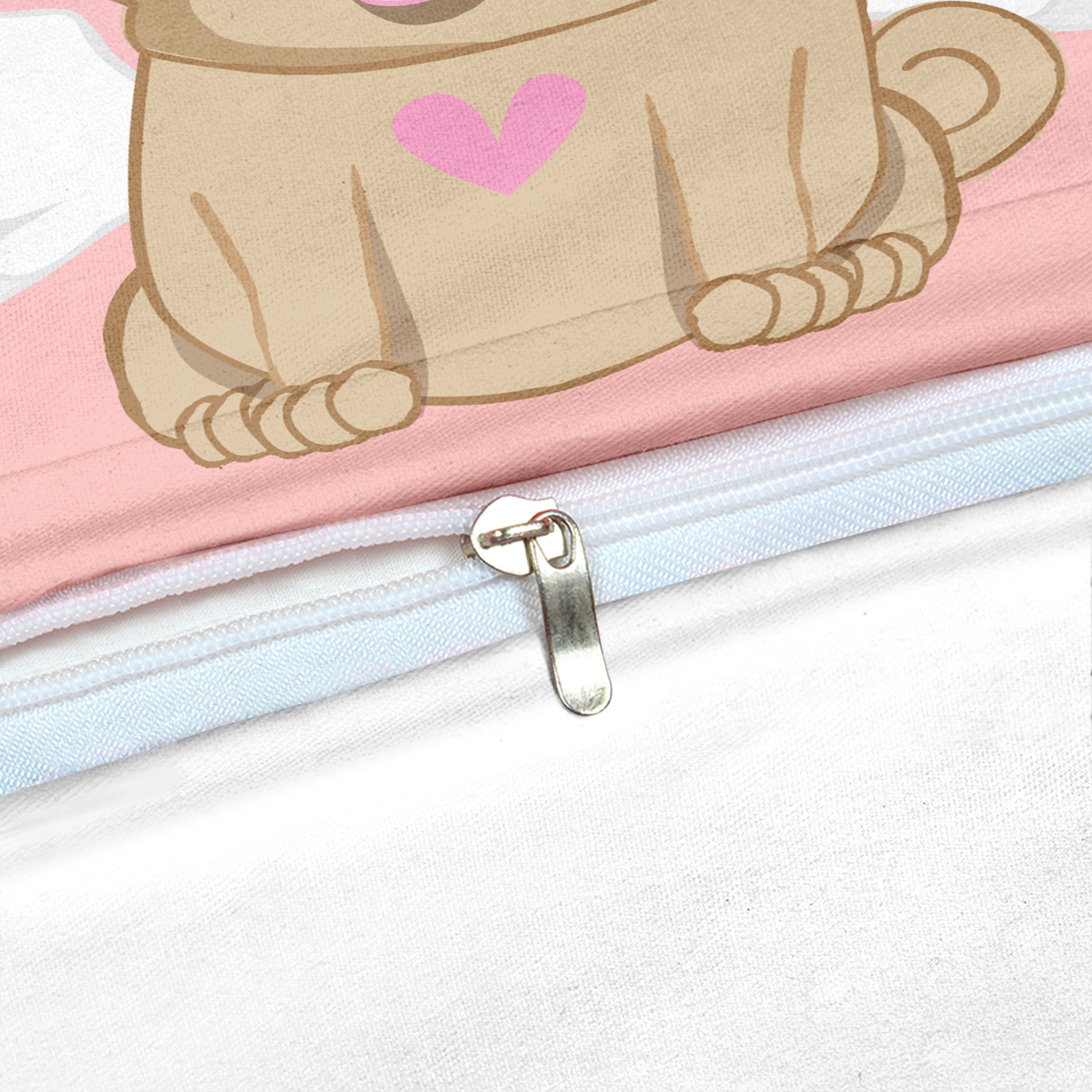 2. The color of this Pink Pug Unicorn Bedding Set may vary slightly from the product pictures due to computer monitor settings, lighting and background.