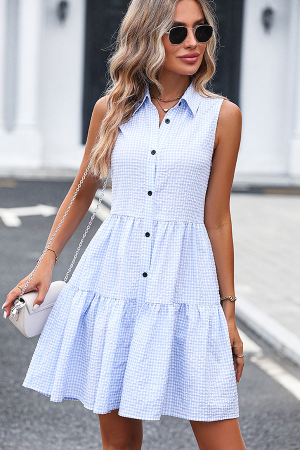 • Plaid Print Sleeveless Ruffle Hem Dress