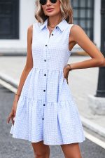 Be the first to review “Plaid Print Sleeveless Ruffle Hem Dress”