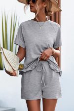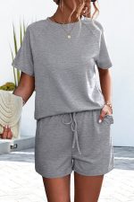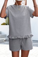 Be the first to review “Round Neck Ruffle Hem Solid Color Two Pieces Set”