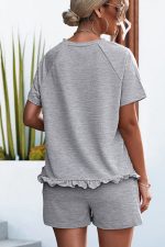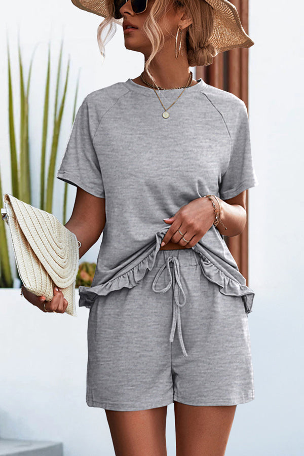 • Round Neck Ruffle Hem Solid Color Two Pieces Set
