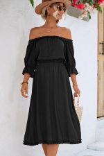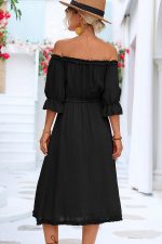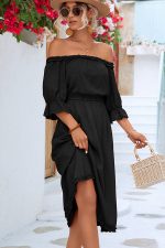 - Solid Color Off The Shoulder Frill Casual Dress