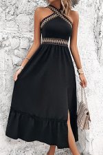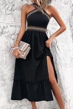 - Solid Color Patchwork Side Slit Dress