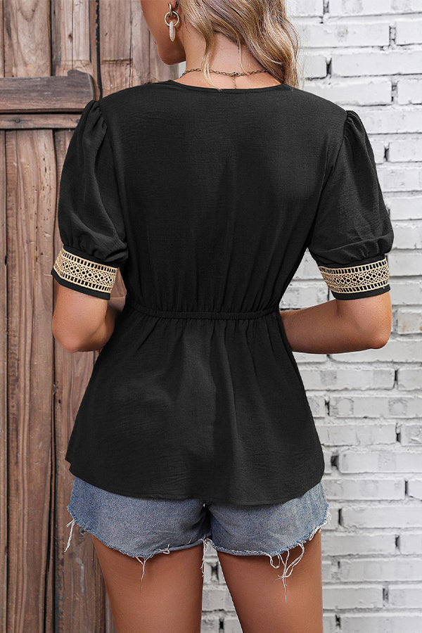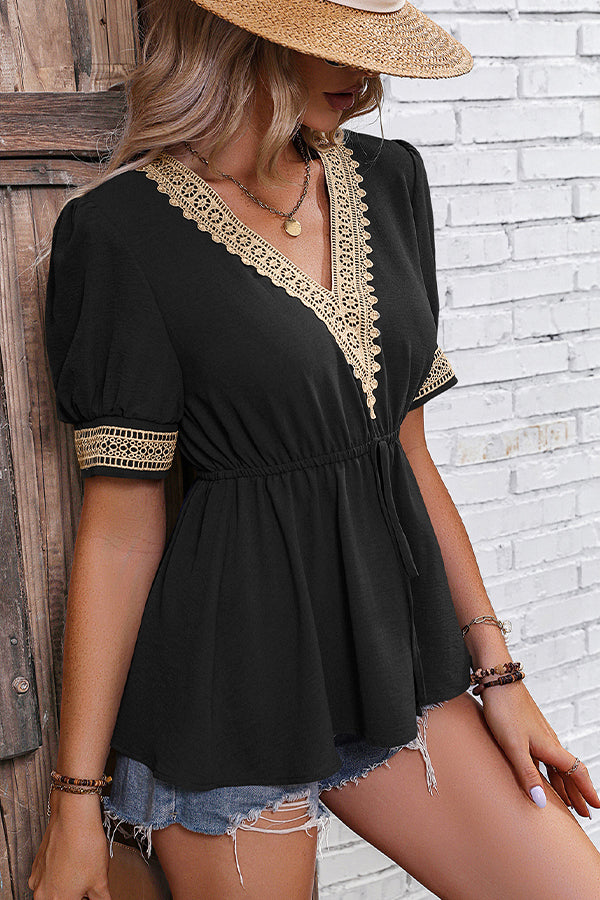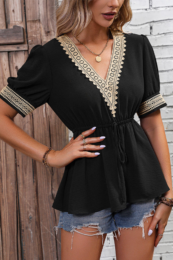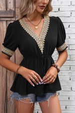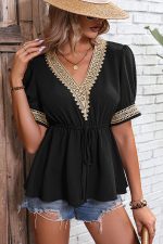 Be the first to review “Solid Color Patchwork Tie Waist Causal Tops”