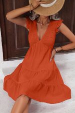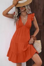 - Solid Color Smocked Ruffle Hem Mini Dress
