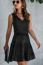 - Stringy Selvedge Solid High Waisted Casual Dress