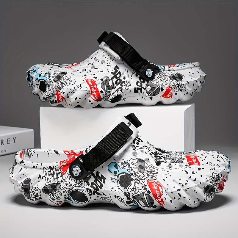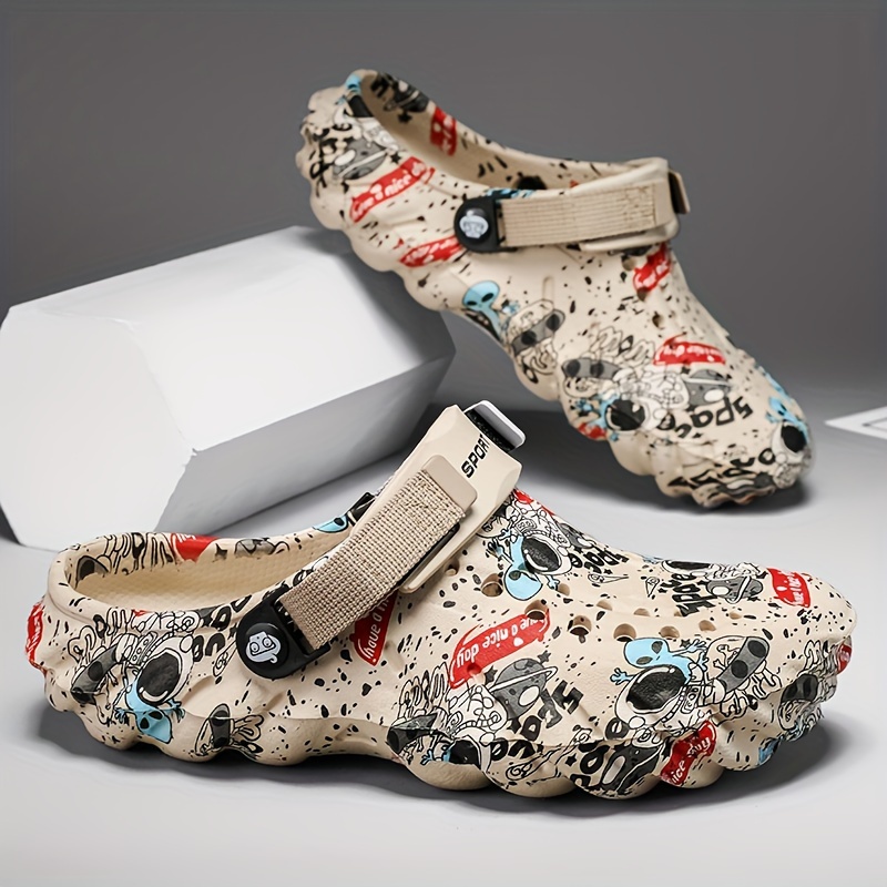 Unisex Graffiti Print Clogs, Fashion Breathable EVA Summer Beach Slide Shoes, Casual Outdoor Garden Sandals