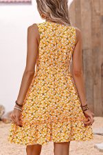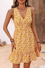 - V Neck Floral Print Casual Mini Dress