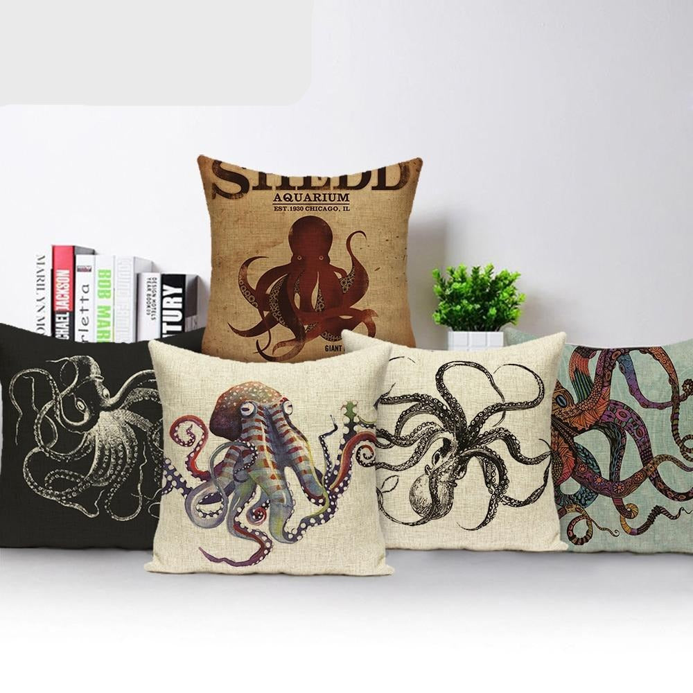 Made from durable cotton linen, this Vintage Octopus Pillow Cover comes in a variety of unique designs and will make a great compliment to any nautical decor.