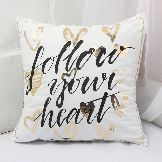 White / Gold Print Pillow Cover Details: