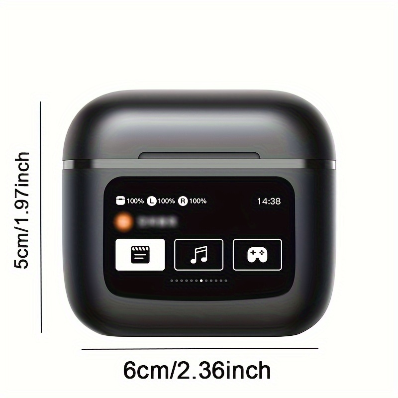 Wireless Earbuds with LCD Touch Screen Display, Smart Noise-Canceling Sleep-Aid Earphones, Ergonomic Design, 40-Hour Long Battery Life, Rechargeable Lithium Polymer Battery, Includes Charging Case and Data Cable