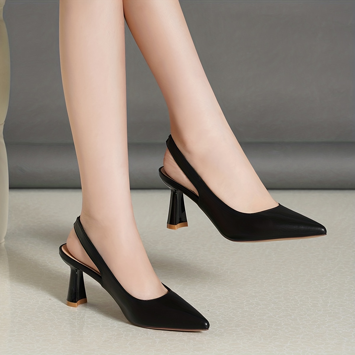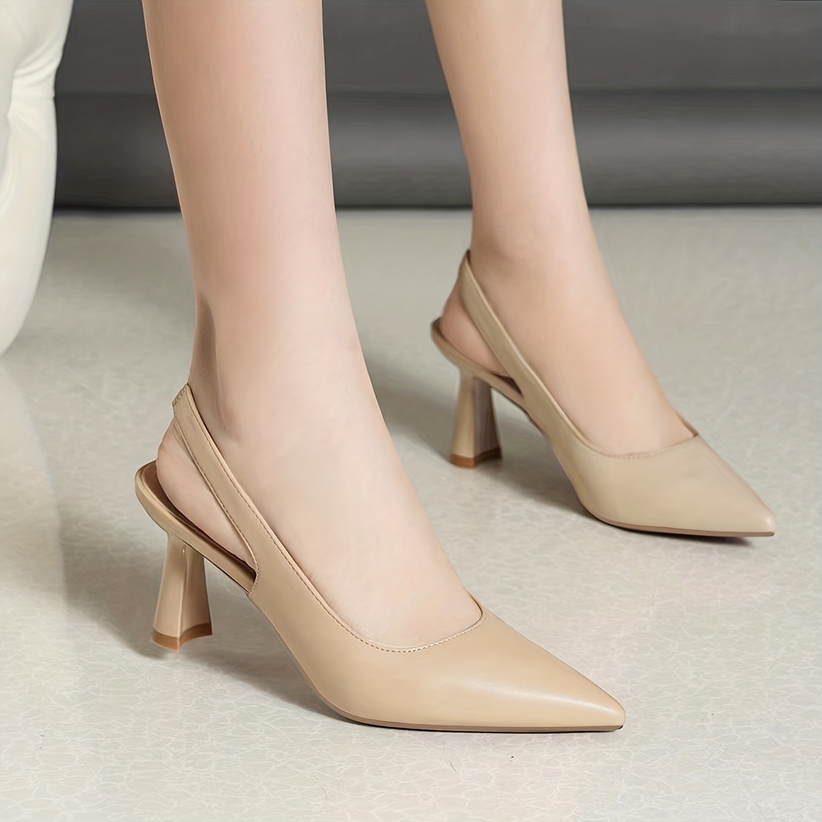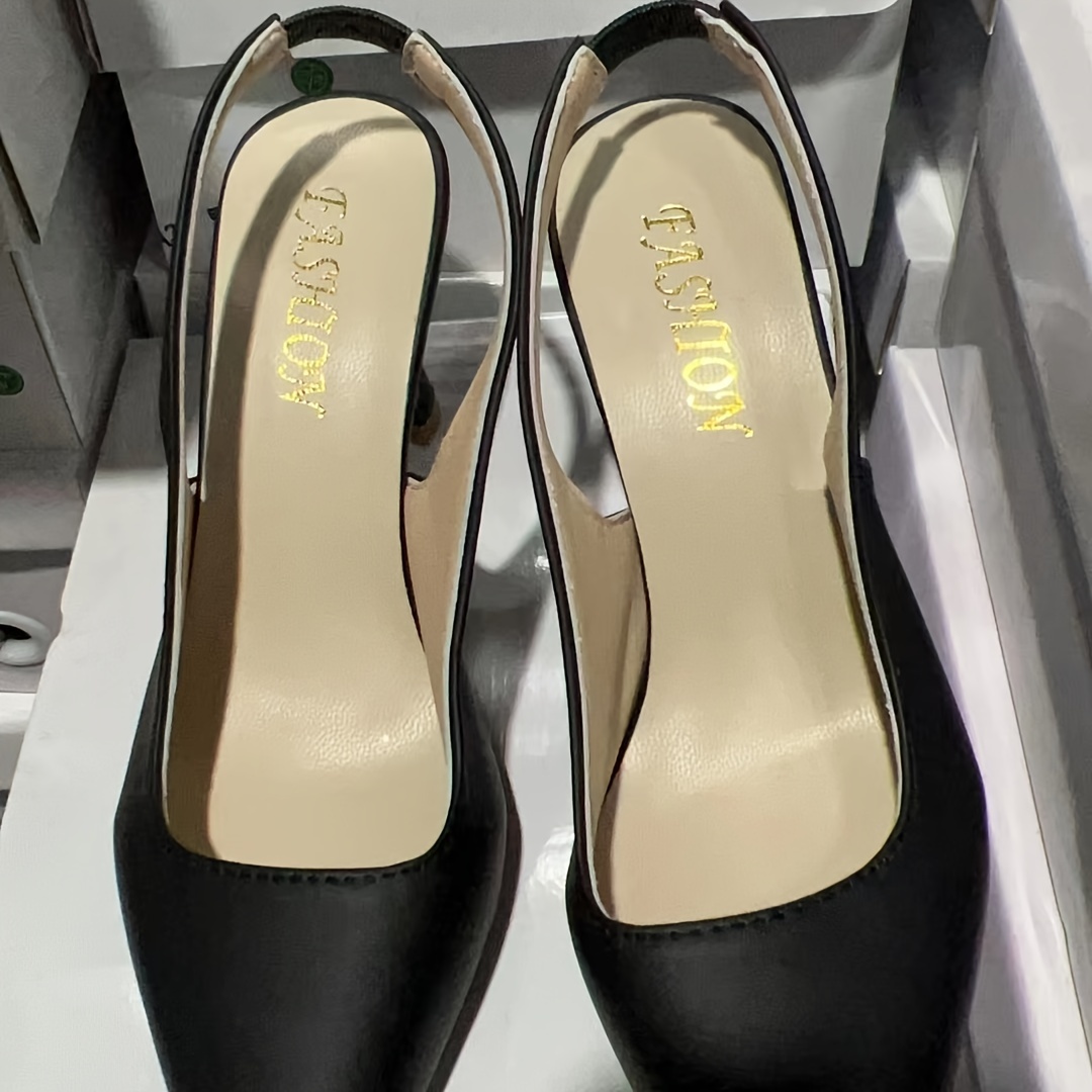 Women’s Solid Color Shoes, Point Toe Ankle Strap Slingback Stiletto Heel Trendy Shoes, Elegant Dress Comfy Shoes
