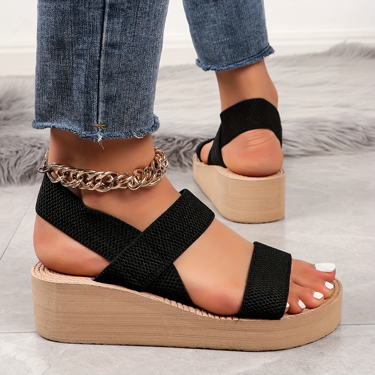 Women’s Summer Wedge Sandals, Casual Round Open Toe Elastic Band Shoes, Comfortable Slip On Beach Sandals