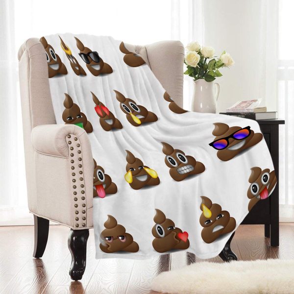 White Cartoon Poop Emoji Fleece Throw Blanket
