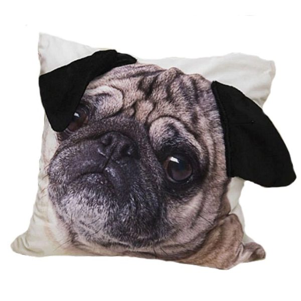 18" Adorable Pug Puppy Face Throw Pillow Cover w/ Ears
