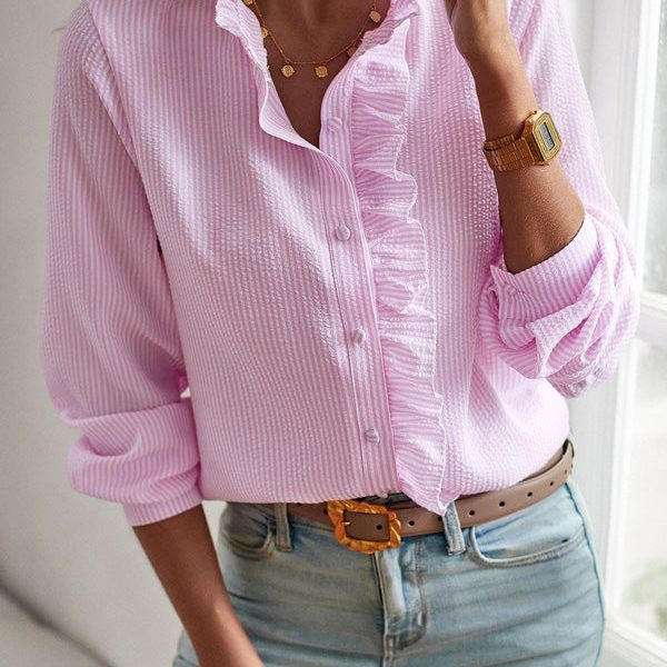 Button Stringy Selvedge Long Sleeve Casual Tops