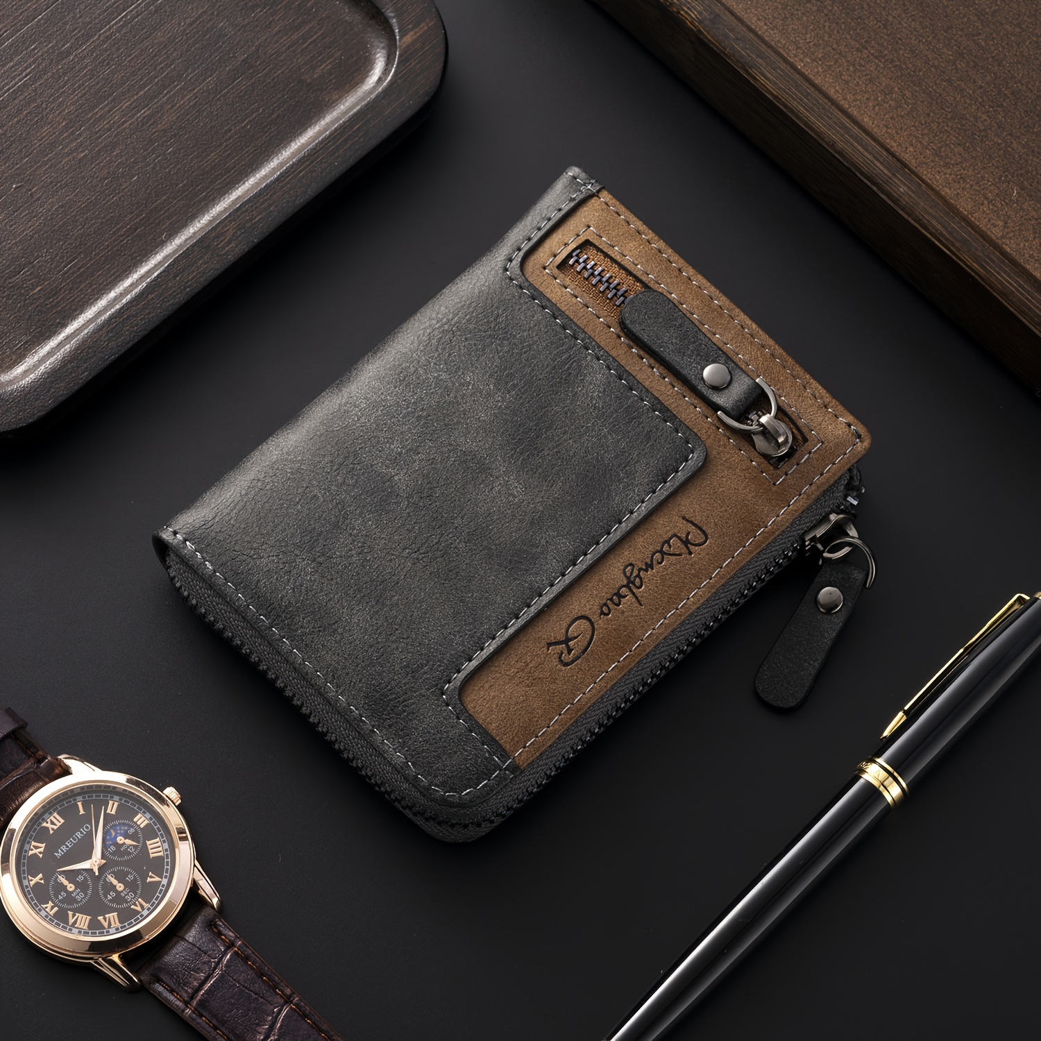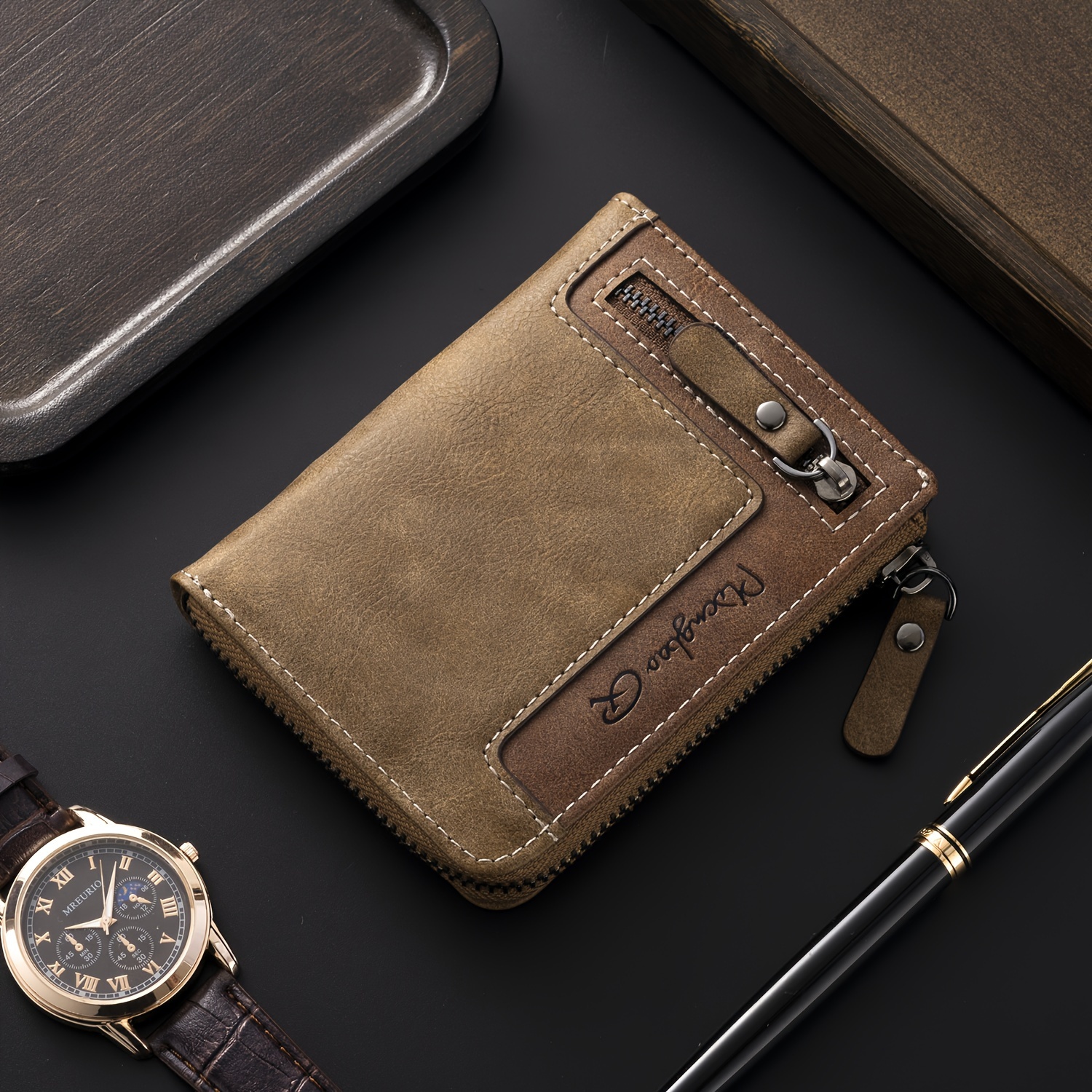 1pc Men’s Retro Short Wallet, Multifunctional Fashion Zipper PU Leather Wallet, Ideal Gift For Men