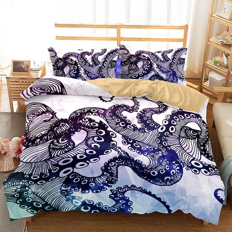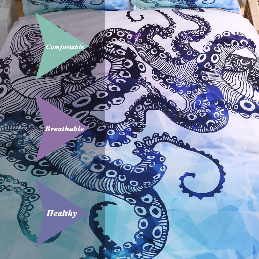 2. The color of this Octopus Bedding Set may vary slightly from the product pictures due to computer monitor settings, lighting and background.