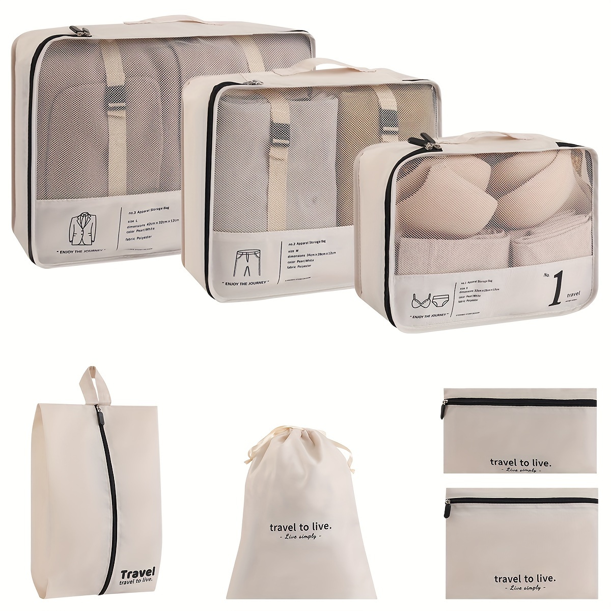 7 Pcs Packing Cubes For Suitcases, Lightweight Travel Luggage Packing Organizers, Compression Storage Shoes Bag, Clothing Underwear Bag, Travel Cubes Set