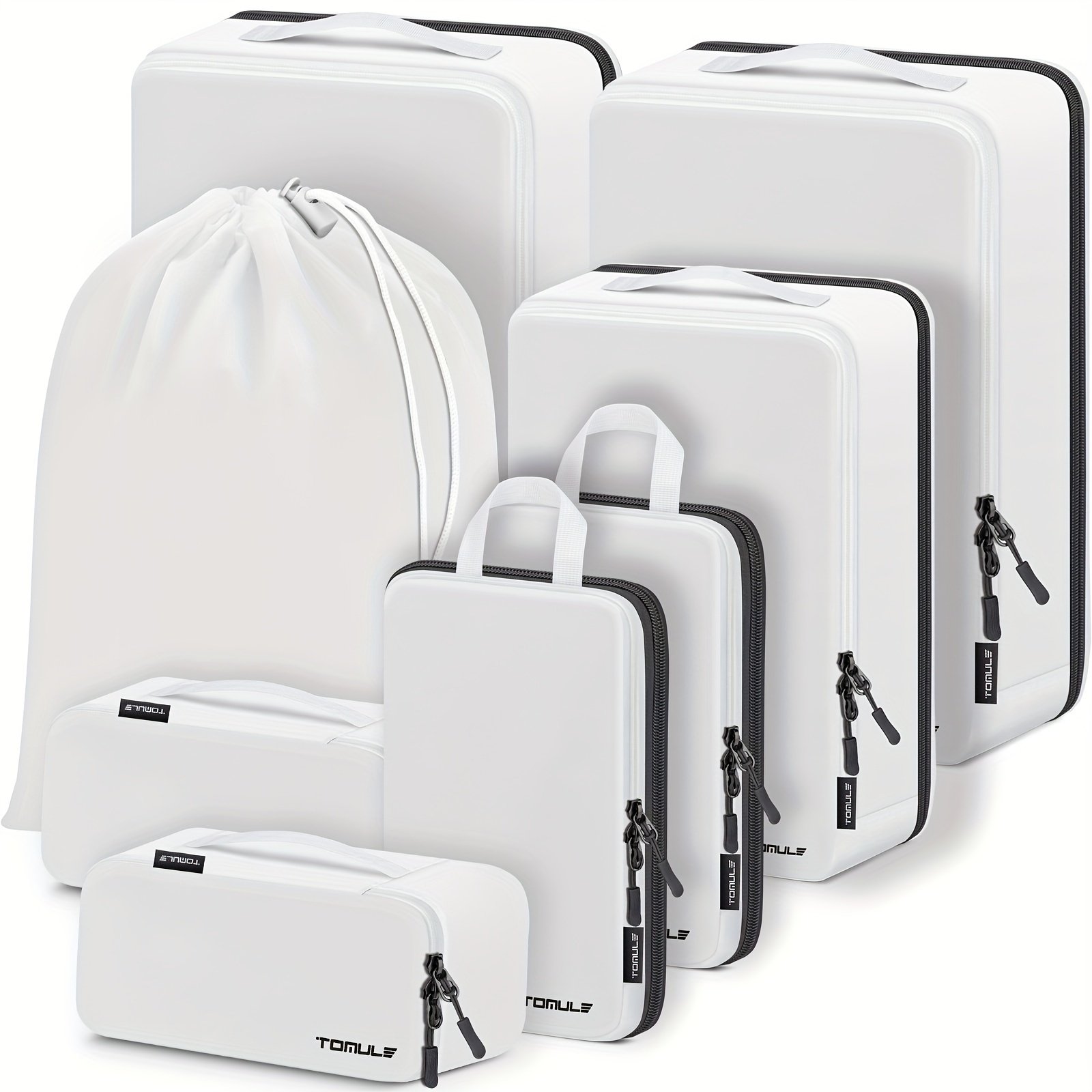 8 Pcs Travel Compression Packing Cubes, Solid Color Versatile Luggage Bags, Lightweight Clothes Bags