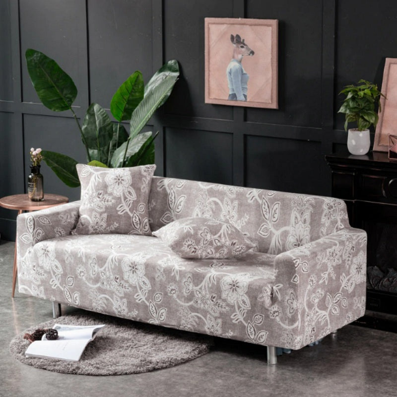 Compatible with most standard love seats and sofas, this Beige Floral Pattern Sofa Cover is stylish, easy-to-install and will provide a contemporary look to your old, outdated couch. Ideal for renewing old furniture – or protecting new.