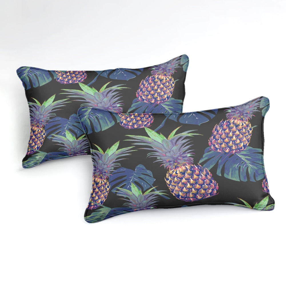 Black 2/3-Piece Fluorescent Pineapple Print Duvet Cover Set