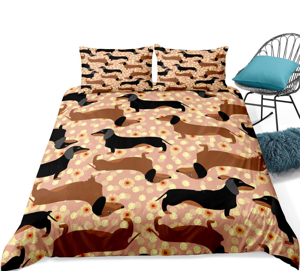 Brown 2/3-Piece Floral Dachshund Dog Pattern Duvet Cover Set