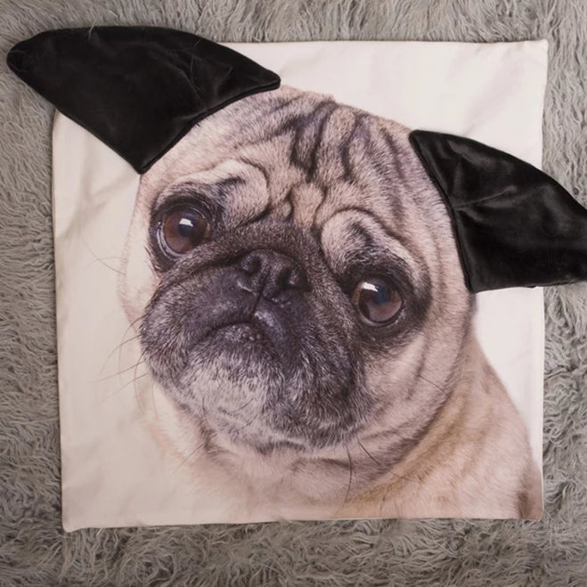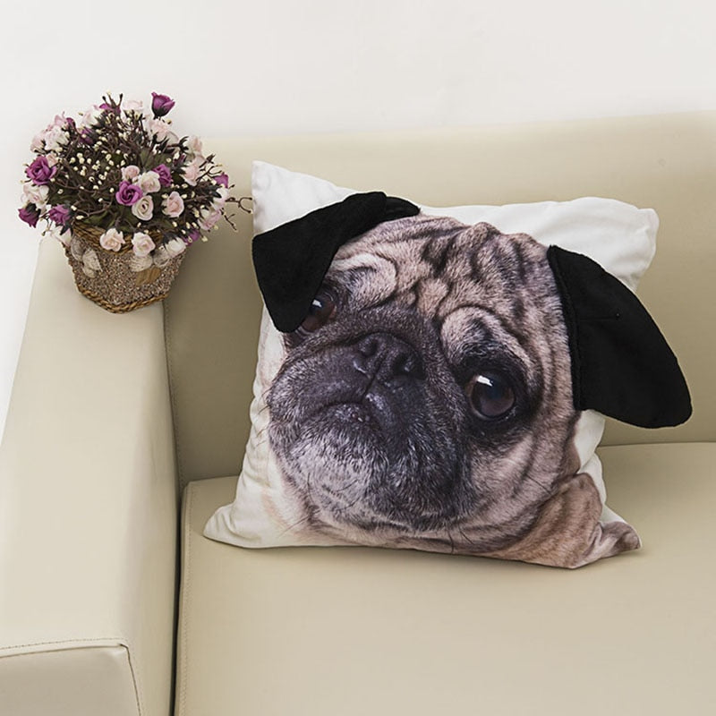 Made from soft polyester microfiber with protruding ears, this adorable Pug Puppy Pillow Cover makes a wonderful accent pillow for pug (and puppy) lovers.