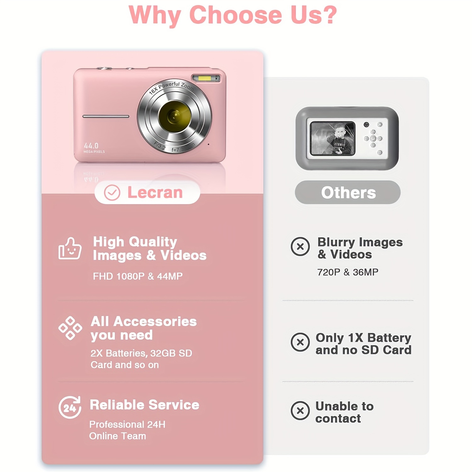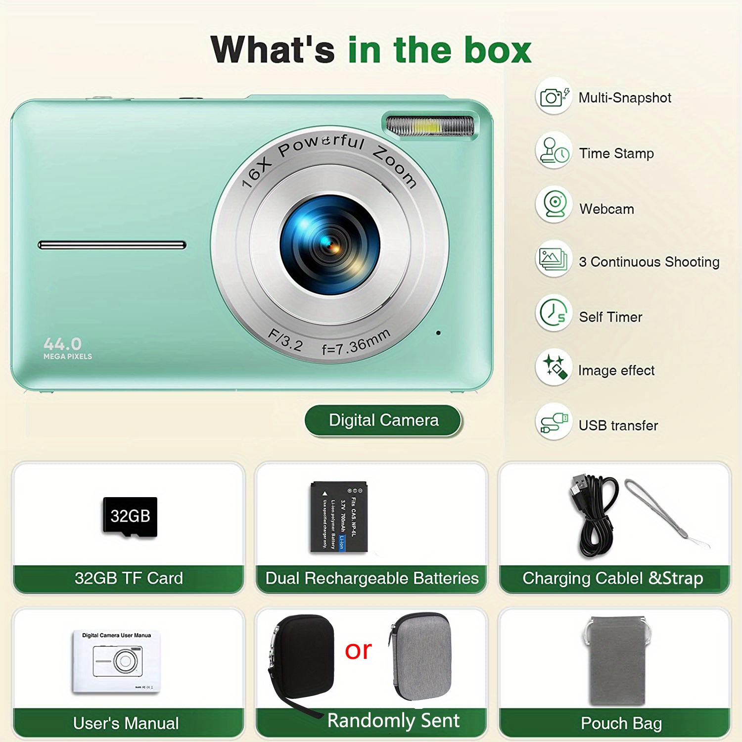DC403 44MP 1080P HD Digital Camera 16X Digital Zoom Cameras For Vlogging 6.1 Cm LCD Rechargeable Camera Photography Professional Camera For Teenagers, And Beginners With 32G TF Card, Support For Taking Photos, Recording Videos, And Webcam, For Thanksgivin