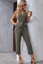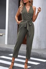 Be the first to review “Deep V Neck Knot Waist Jumpsuits”