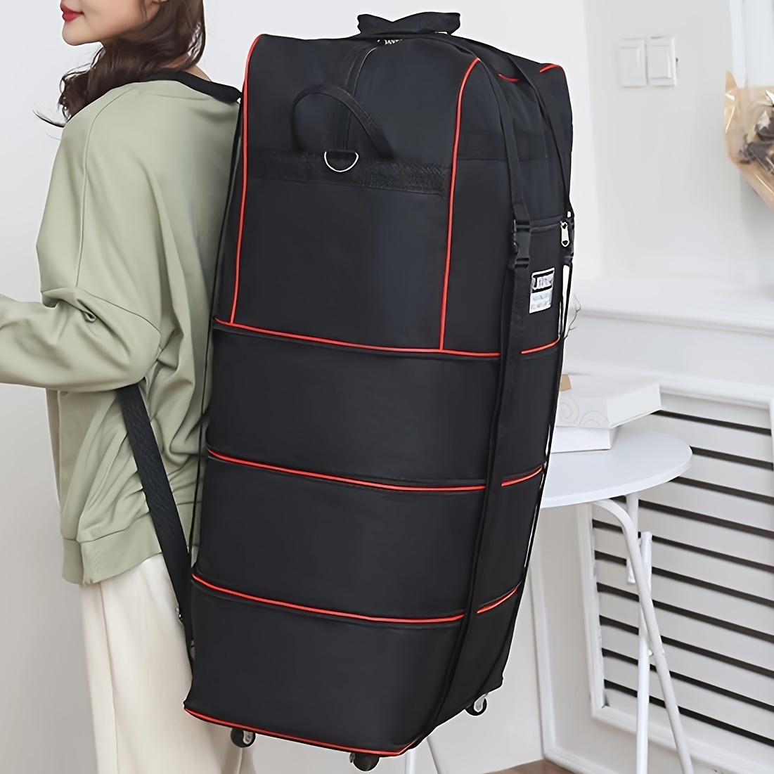 Expandable Wheeled Luggage Backpack, Foldable Large Capacity Travel Bag With Silent Resistant Wheel, Ideal For Business Trips & Studying Abroad