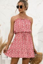 - Floral Print Strapless Tie Waist Mini Dress