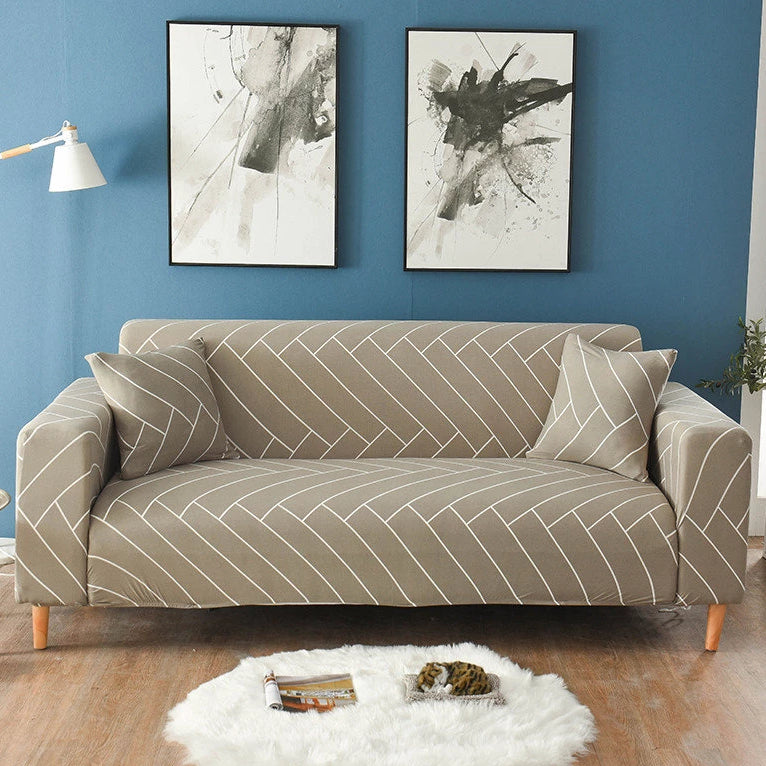 Compatible with most standard love seats and sofas, this Khaki Herringbone Pattern Sofa Cover is stylish, easy-to-install and will provide a contemporary new look to your old, outdated couch. Ideal for renewing old furniture – or protecting new.