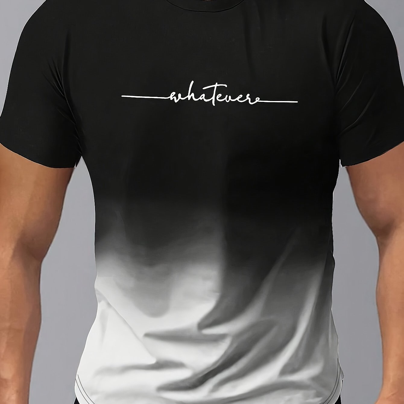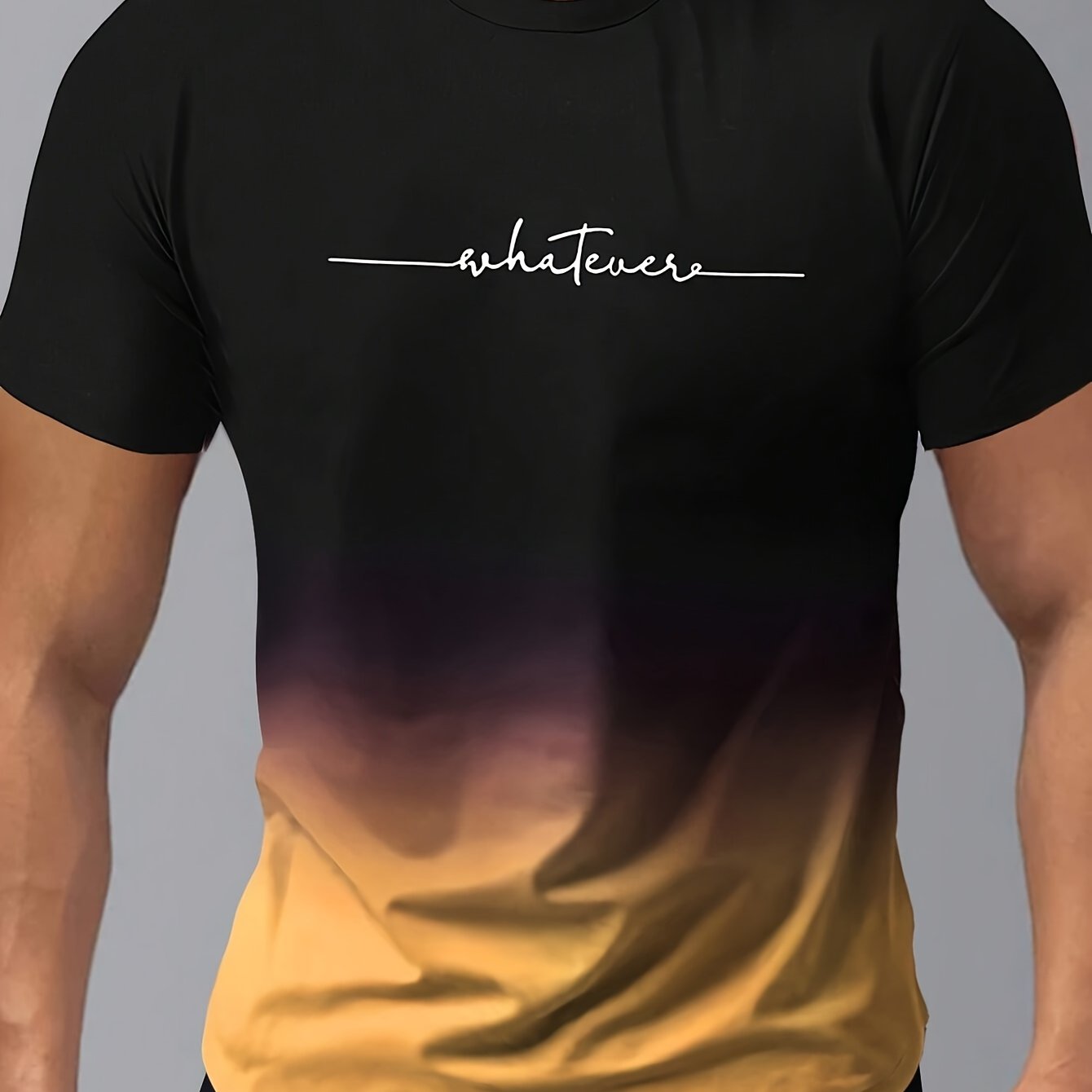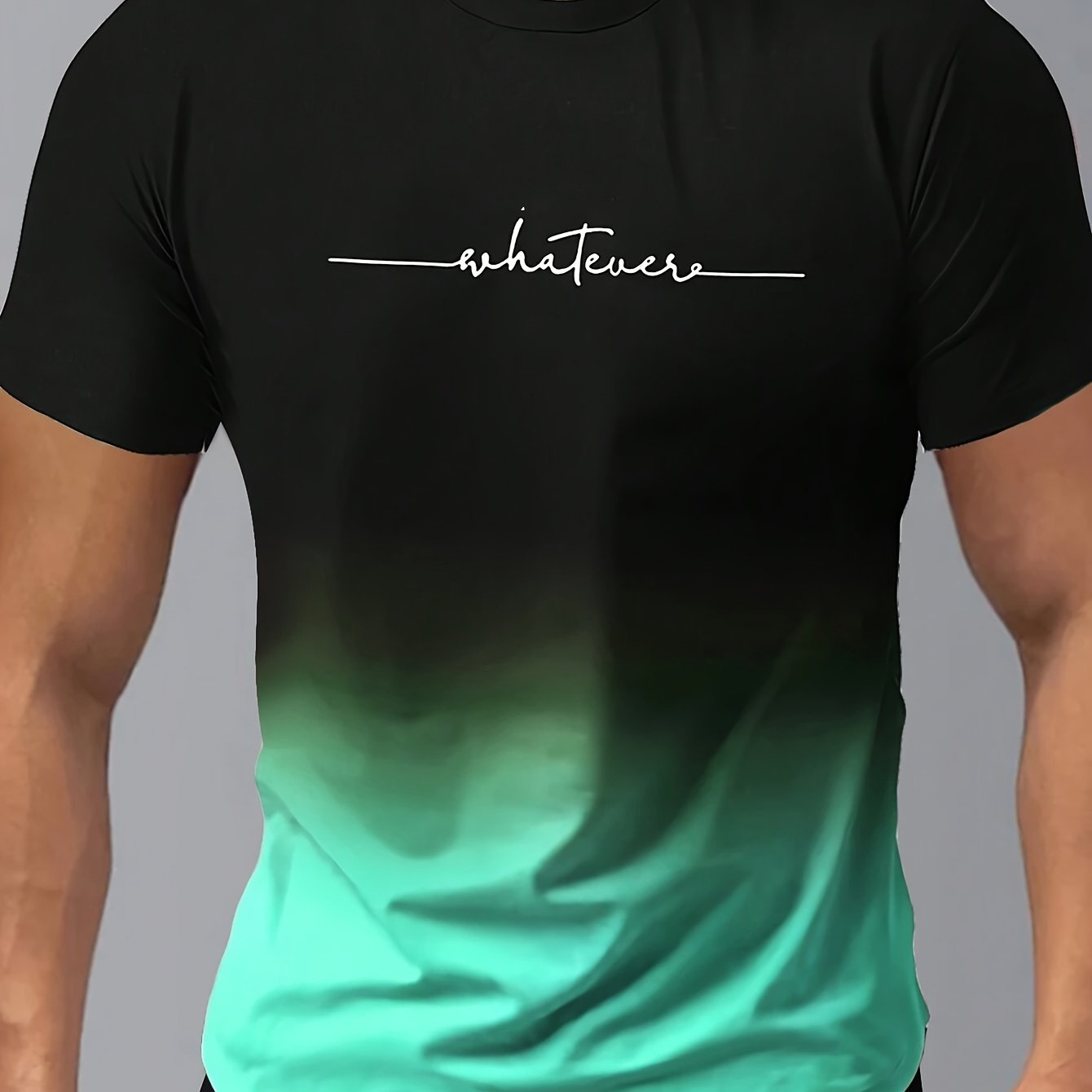 Men’s Gradient Color And Alphabet Print “WHATEVER” Crew Neck And Short Sleeve T-shirt, Casual And Chic Tops For Summer Outdoors Wear